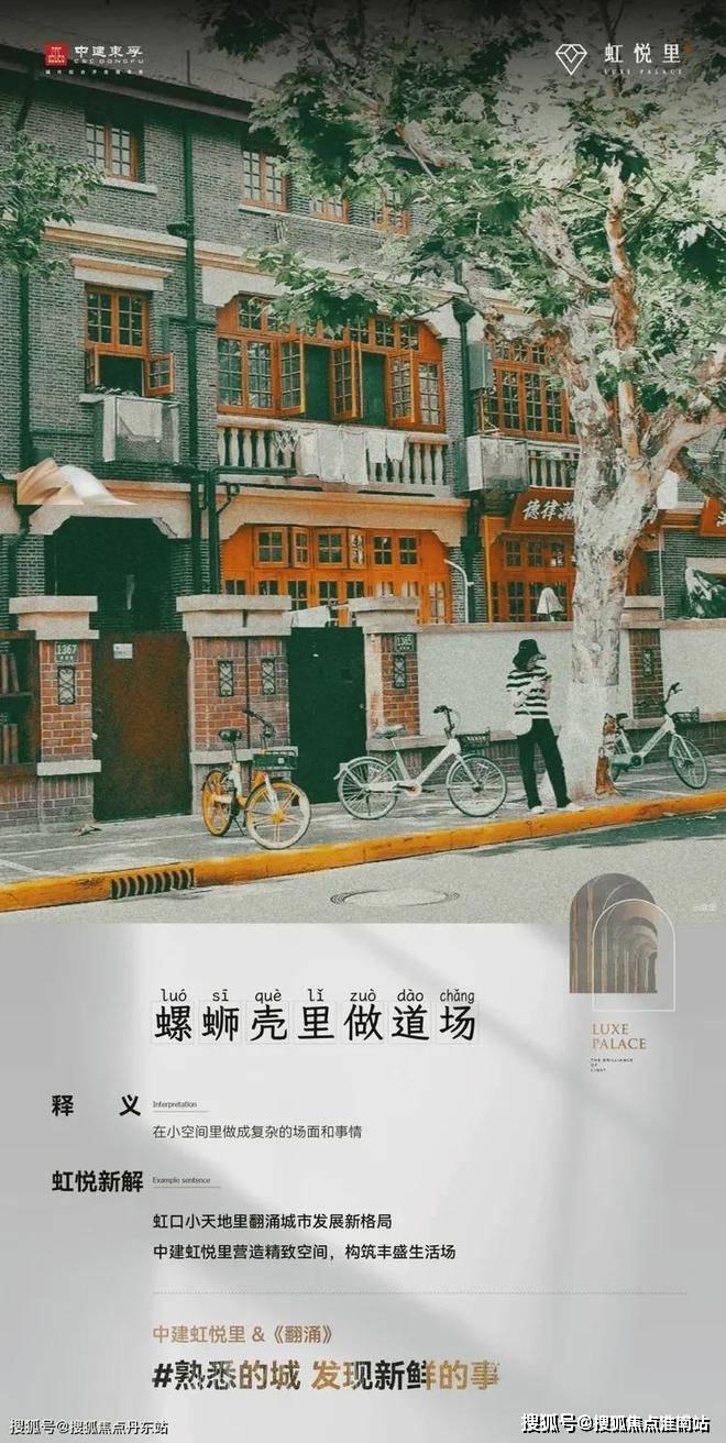 中建虹悦里售楼处电话:400_877-8334☎择地热土 醇熟配套悦己生活:中建虹悦里兼得虹口中环的都荟优势与醇熟老城的生活氛围,重识海派烟火气,顺应科技美学的趋势,采撷世界滨水的灵感,倾力打造精致而美好建面约2.63万方品质住区,创享愉悦生活。