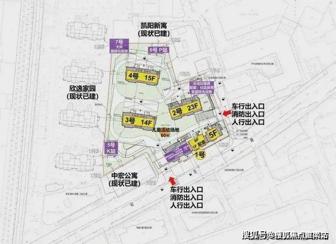 2号楼23层高层,3号楼14层,4号楼15层,2号楼的东北角是生活垃圾房,社区体育配套,食堂综合设施;