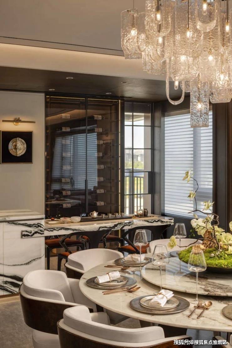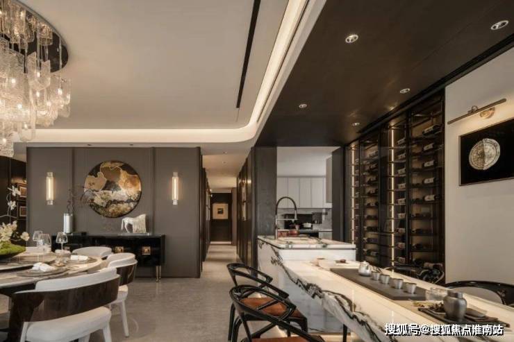 佳宴必有美酒,吧台、酒柜等由酒延展的构件体现其自身具备的收藏与展示属性。