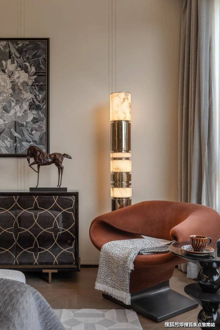 卧室的情景一角,摆上休闲沙发椅与落地灯,可阅读、独处,配合柔和的灯光,给予充分的放松情境。