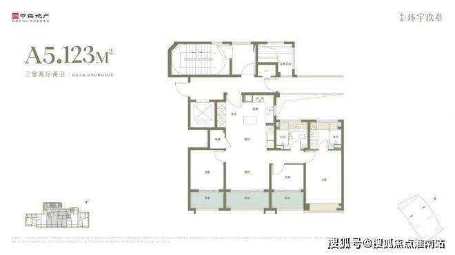 以建面约123㎡3房为例,南向4开间,3阳台+6飘窗+1设备平台。