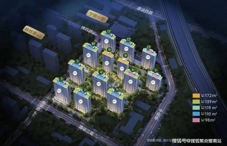 开发企业:杭州宁佳置业有限公司,萧山市北区建设三路,13幢21-26F高层住宅(70年)占地面积:58296㎡,建筑面积:197535.2㎡,容积率:2.5,绿地率:35%,可售:1130户,面积:建面约98㎡、110㎡、119㎡、139㎡、172㎡,精装限价39500元/㎡(含精装3500元/㎡),绿城物业,交付时间:预计2026年,具体以购房合同为准!