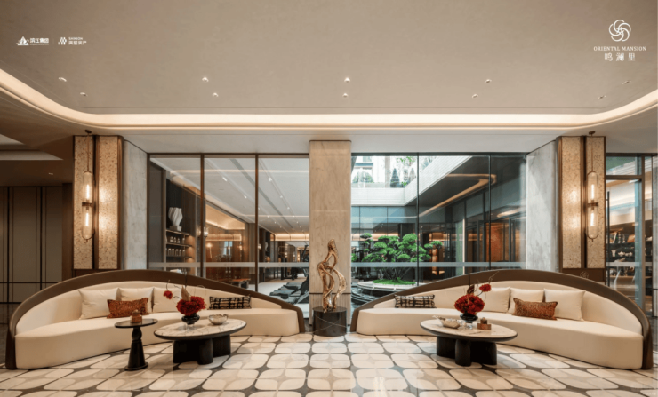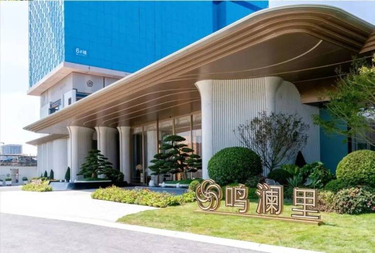 鸣澜里的建筑立面设计颇具匠心,四面铝板、造型格栅与大面玻璃幕墙的精妙设计,辅以深灰基座与鎏金窗框的点缀,构筑出沉稳大气的风格,赋予建筑轻盈漂浮的视觉感受。通过打磨建筑单体的圆角弧度,不仅丰富了层次感,更营造出通透开阔的空间意境,引领未来审美新风尚。