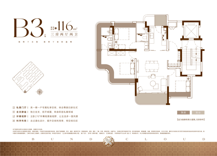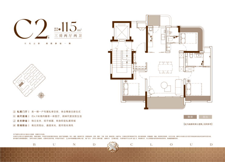 三居:建面约115㎡(流光云栖),客厅朝南,主卧朝南