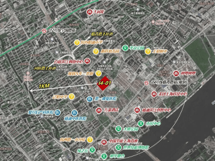 交通方面,距离12号线宁国路站约900米,步行10分钟可达;规划中的24号线临青路站距地块南侧仅300米,未来30分钟直达陆家嘴、静安寺核心商圈,自驾1.5公里内可接入内环高架与杨浦大桥,通勤便捷度拉满。