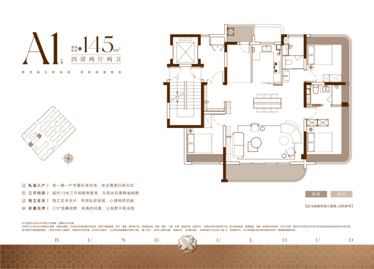 四居:建面约145㎡(璟宸观澜),四室两厅两卫,高得房率设计