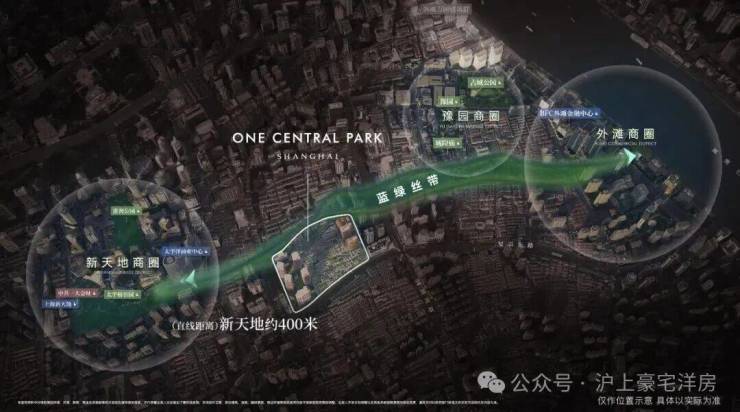 距离新天地直线距离约400米,作为蓝绿丝带规划上的关键节点,随着大新天地东进南拓战略逐步实施,通过 水景、绿地和公共空间,串联 新天地、豫园、外滩三大世界级商业版图。