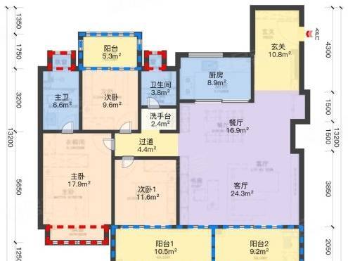 户型:三开间朝南、南北通透、双阳台 / 三阳台设计