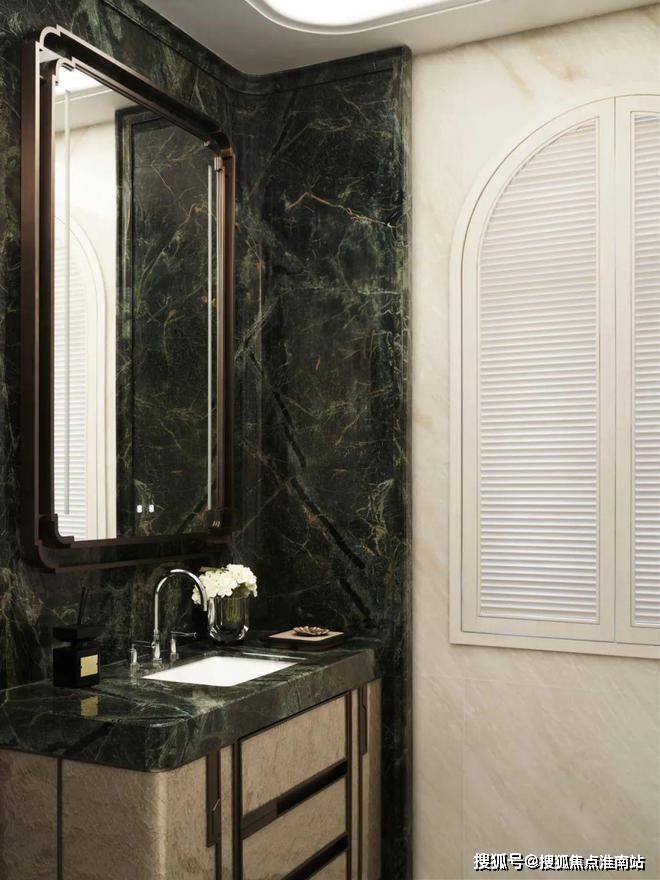 弘安里售楼处电话:400-8818-994✔✔│弘安里官方售楼处地址发布:上海虹口北外滩弘安里官方售楼处电话400-8818-994主卧室的背后是男女主人的衣帽间与卫生间,地面采用了印度大花绿石材的拼花工艺,浴缸背景墙采用雕刻了 Art Deco图案的卡里冰玉石材,设计师在另一侧配置了桑拿室,一天中最放松的时刻也充满设计的分寸与力度。