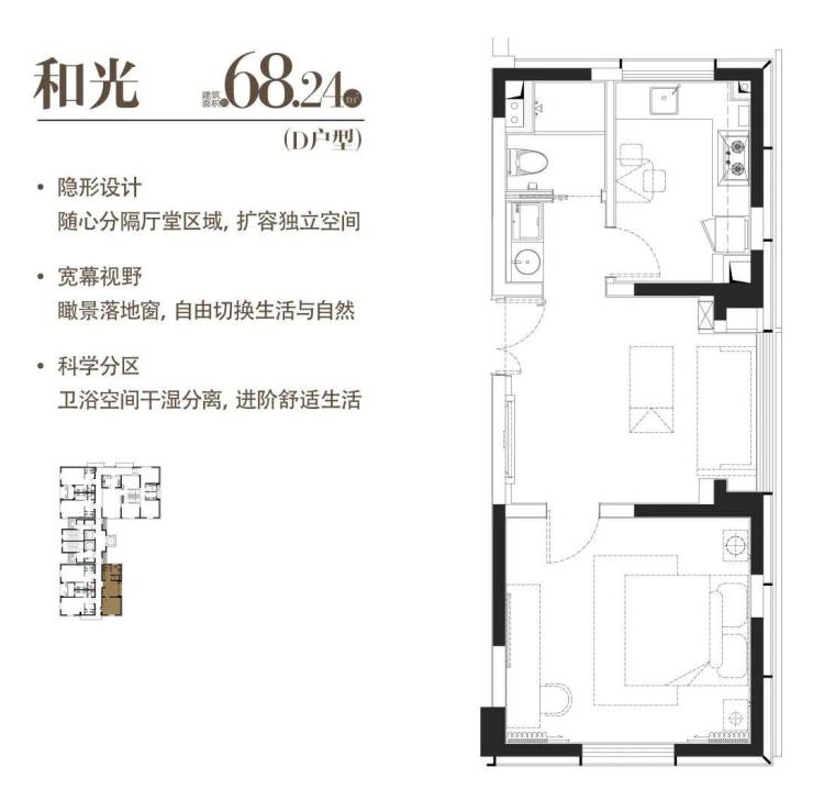 在售户型:约55-120㎡1-2房,主力为55㎡、68㎡1房,95㎡、120㎡2房