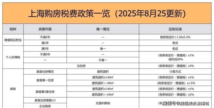 三、上海2025年8月最新购房税费政策
