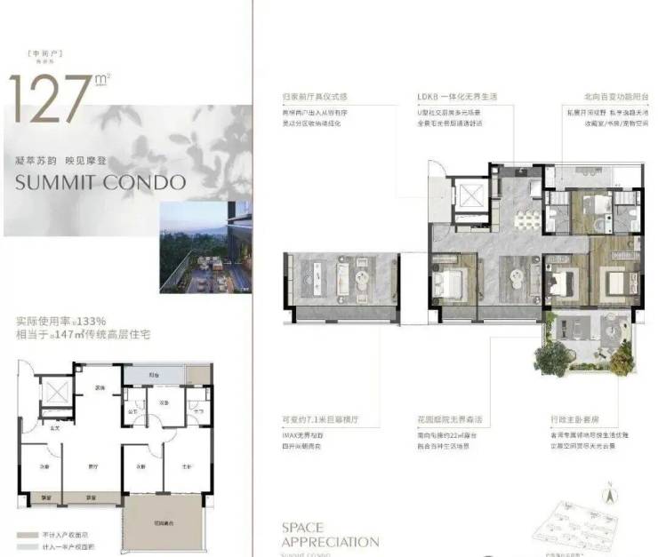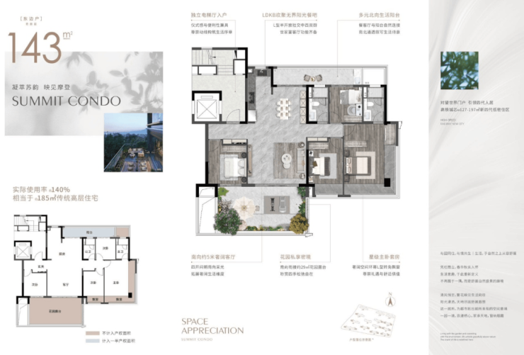 🥇建面约143㎡:欢聚无界约29㎡花园露台实际使用面积相当于传统住宅185㎡传统高层住宅