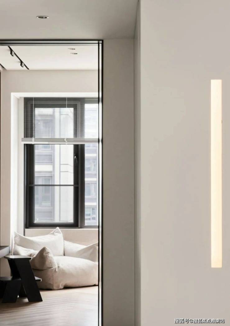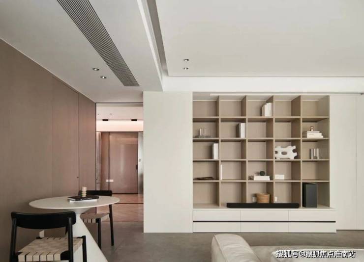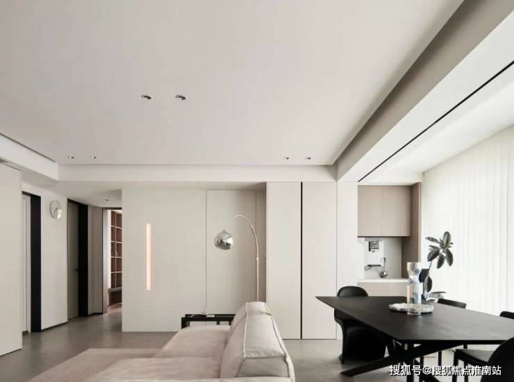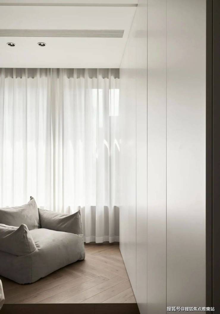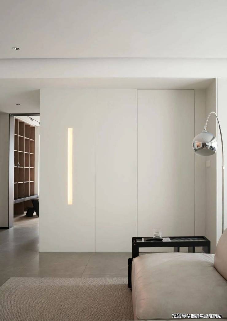 ▲ 沙发旁的主卧入口做隐形门设计.