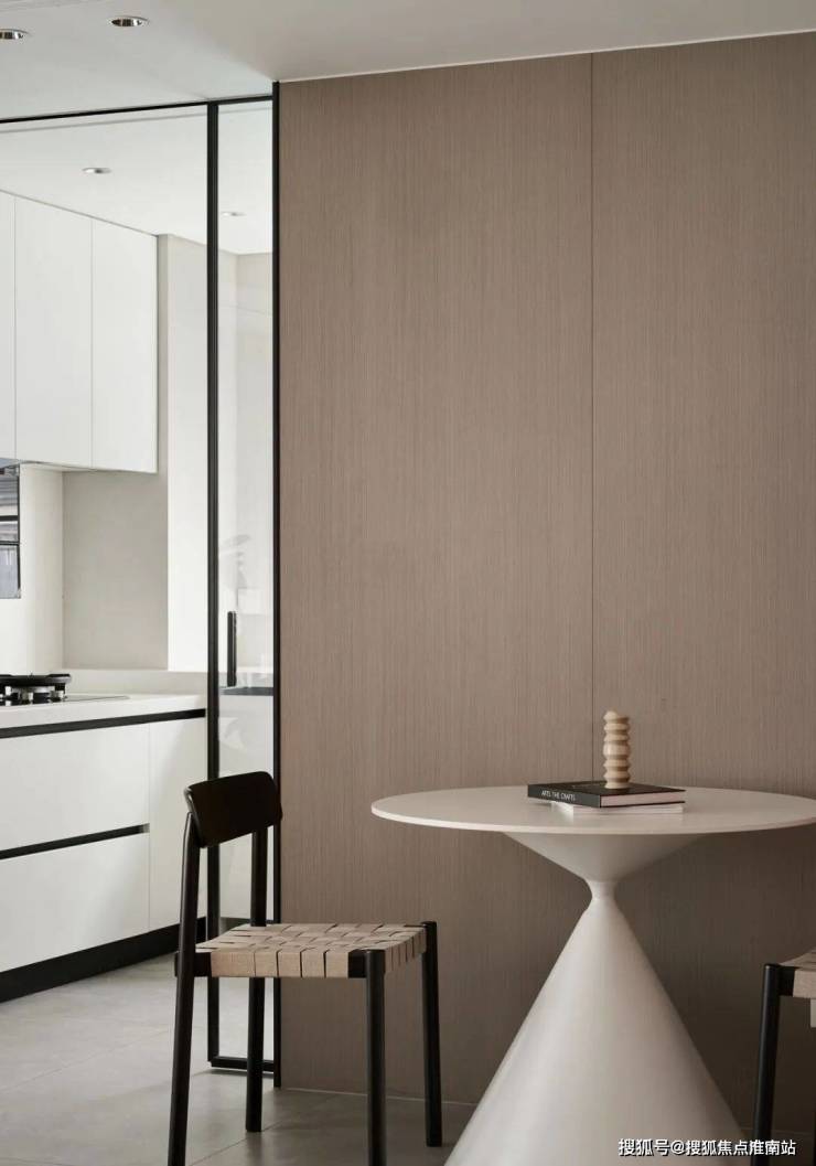 ▲ 平时就餐则在小圆桌进行,厨房采用吊轨玻璃移门隔断,不留卫生死角
