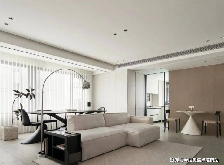 ▲ 客厅取消传统茶几的布局,腾出更多活动空间,选择模块沙发更加自由随性,也可以后期自己调整布局
