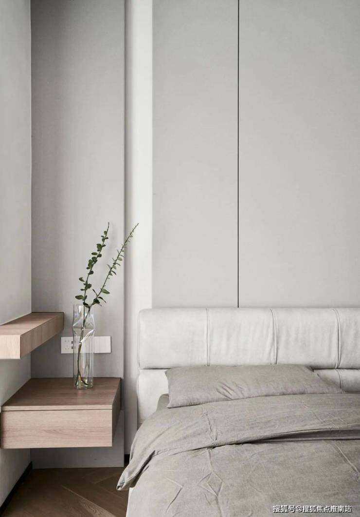 ▲ 主卧延续灰白色为基调,加入少许木色点缀,简单耐看且舒适