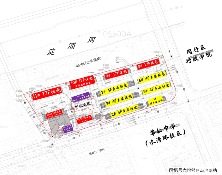 地块拟建6幢17层高层住宅,以及6幢4层的多层住宅。社区内部有下沉庭院,景观等,全部人车分流。