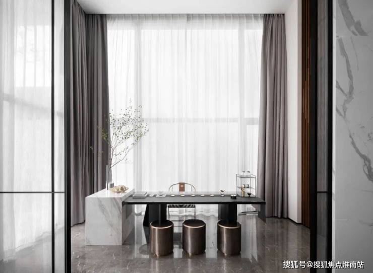 通透的采光,温润的圆形艺术装置墙饰,给家人最温馨的体贴关照。闲暇独坐,任思绪从喧嚣和繁杂中出走。必扬装饰团队一反常规思路,打破空间艺术的风格定义,旨在用当代的设计语汇展现都市时尚生活的灵动性。