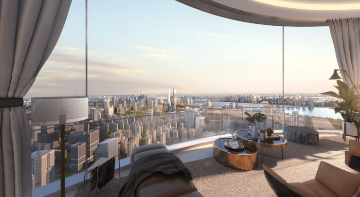 拥有270°的风景是怎样的体验?最小阳台也超11米长;最大阳台在东边套,近17米长。主流进深约2米,最深处约3.5米。这约30㎡的阳台,完全媲美当年蓝色钱江一线江景大宅17米长的传奇阳台。每个阳台均一半幕墙封闭,一半敞开,既舒爽透气又可避风寒。