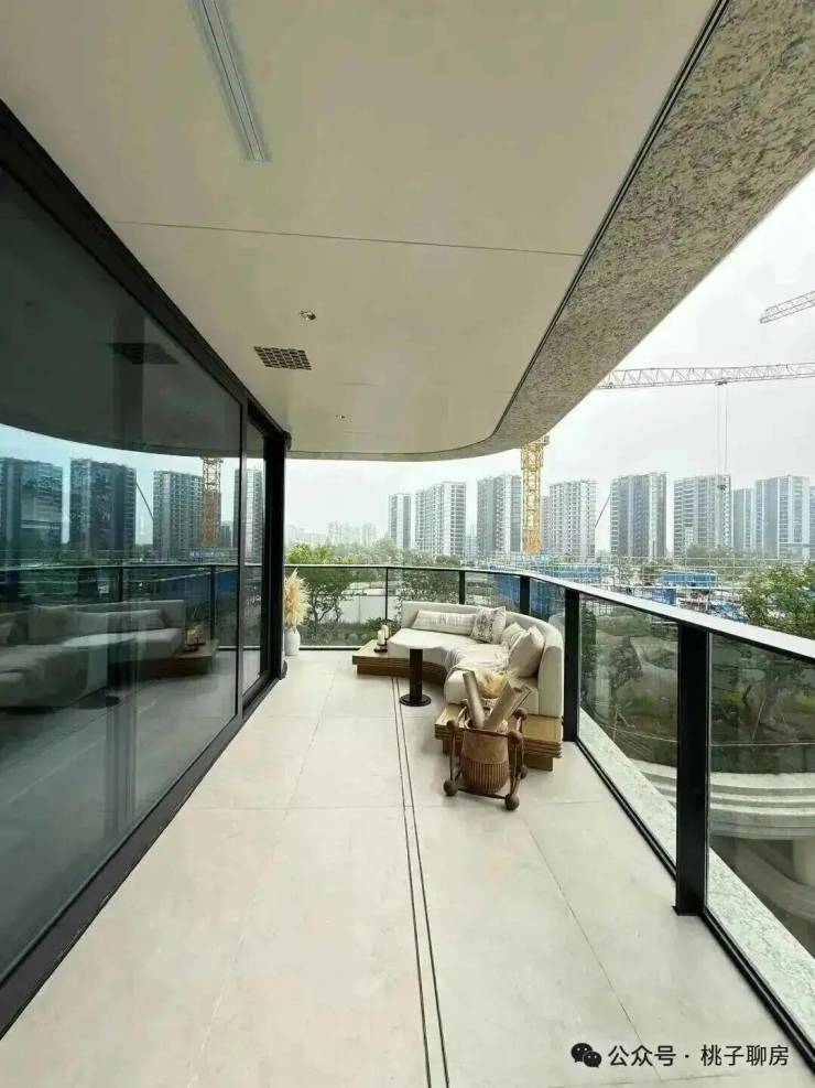尤其是建面约260方户型,项目打造无界弧形客厅,外接浮岛式阳台,采用无柱曲面玻璃,消除传统立柱对视线的切割。