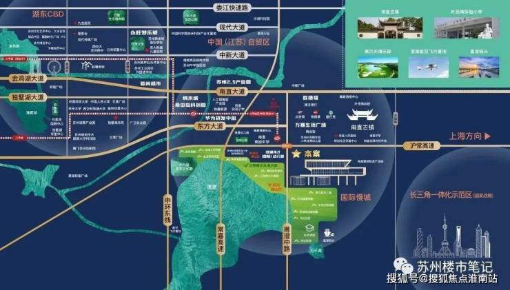 文化中心:甪直景区、澄湖景区(约6万亩)、甪直文化园;