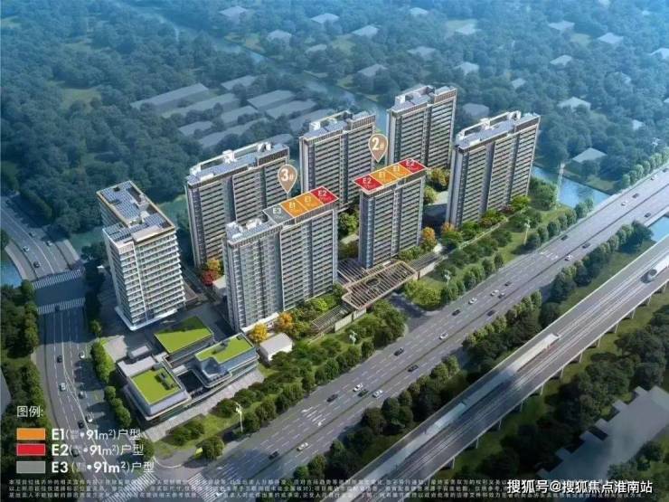 占位上:整个社区的北侧与东侧双面环水、西侧是商业,不止有繁华的城市街景,更有滨水风光,光这个社区的占位和天赋,就已经足够出色。