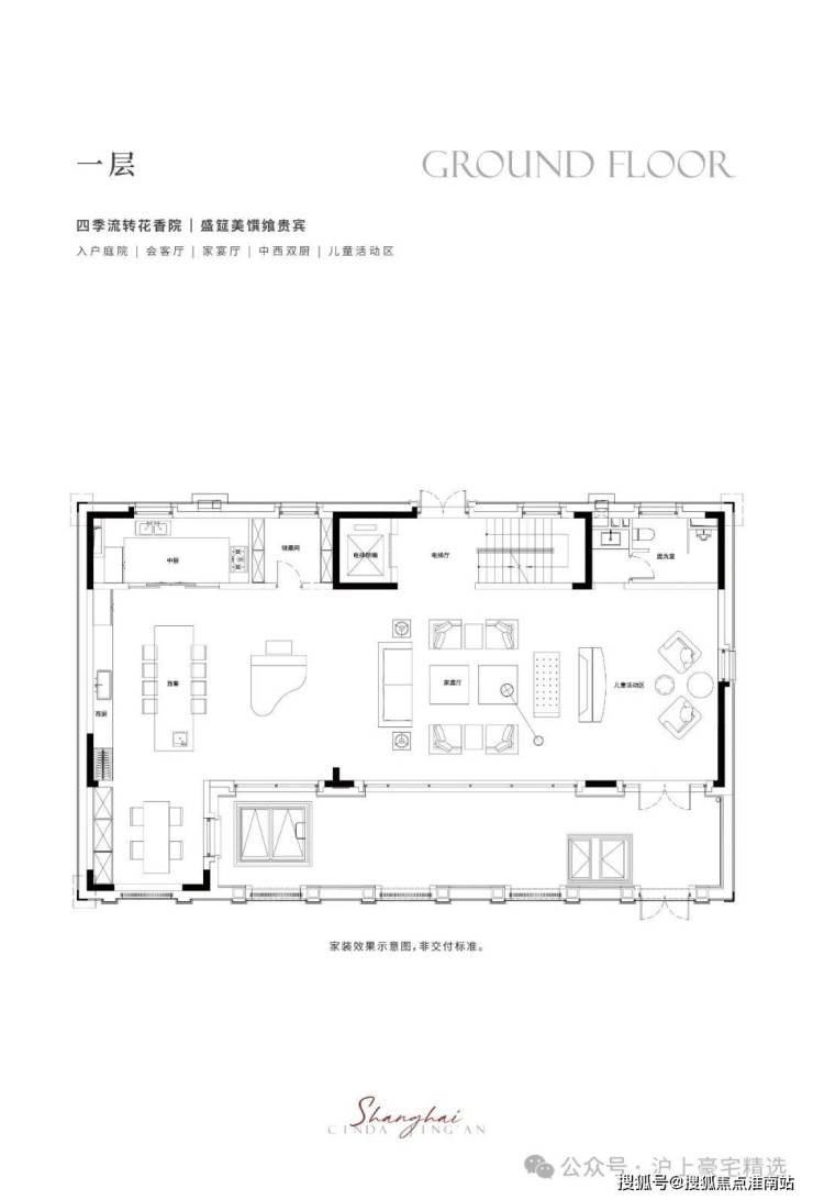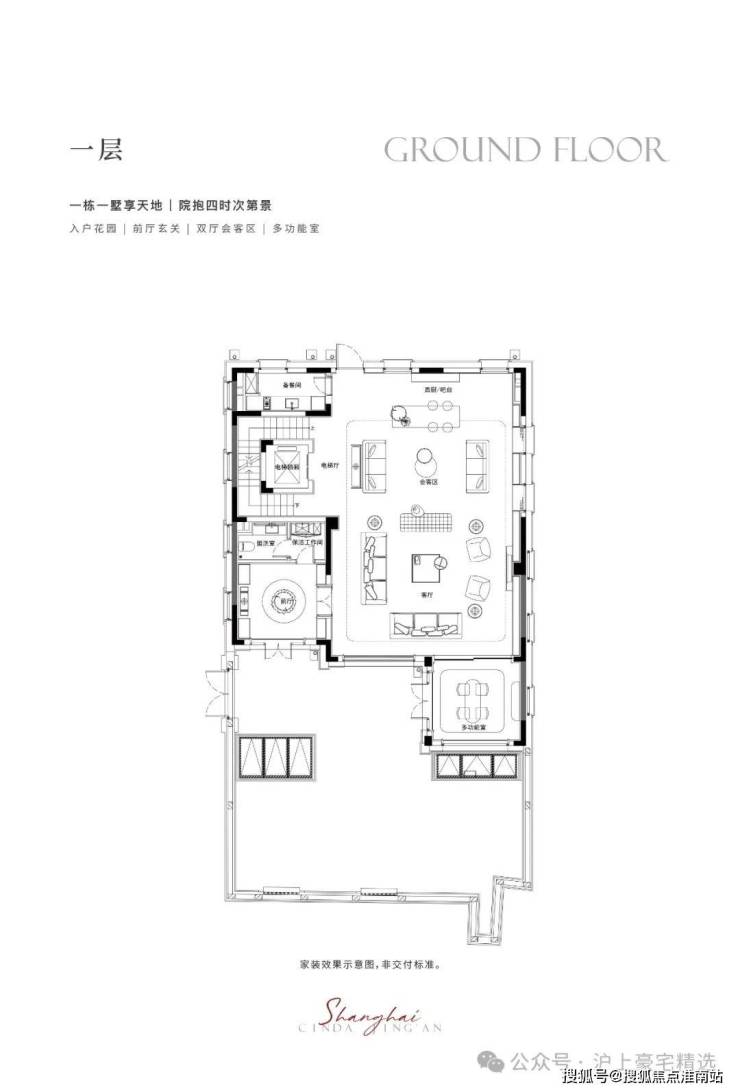 一层藏奢于境,入户门厅,阔绰横厅场域,生活从容尽显