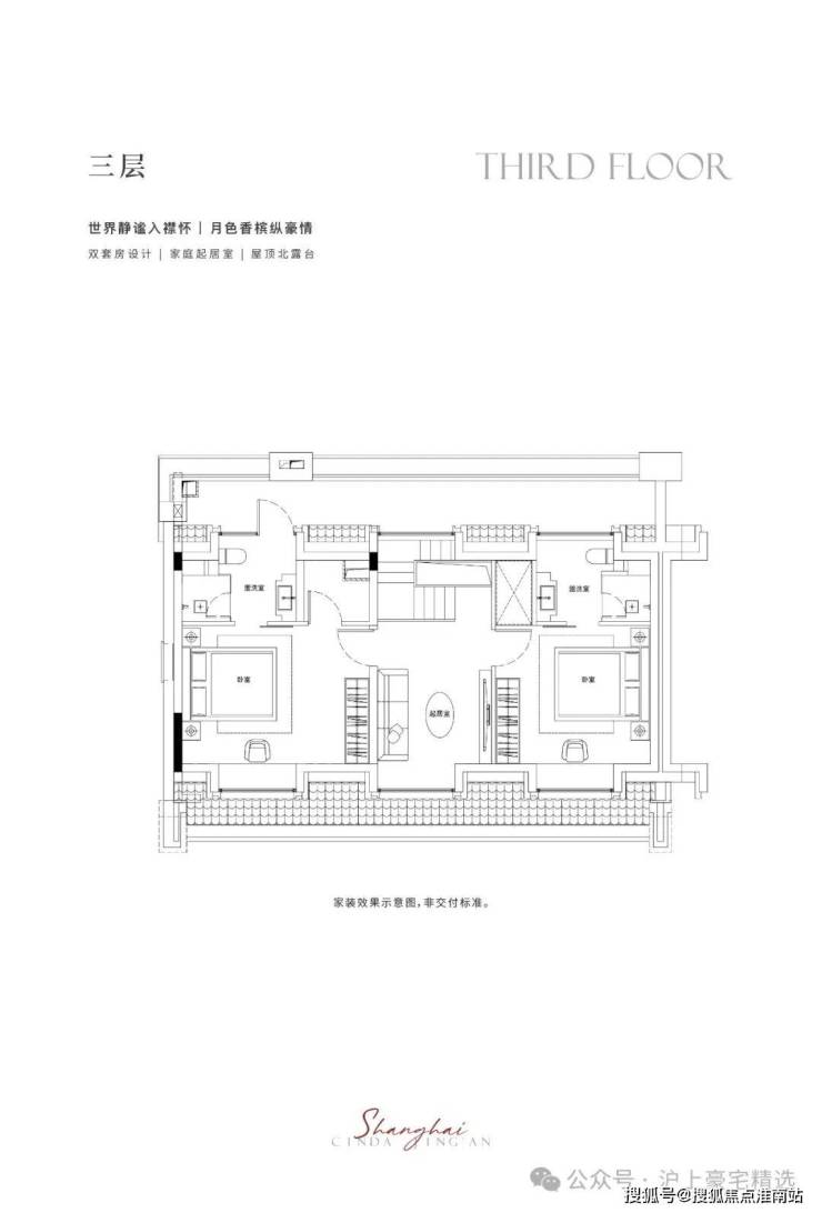 二-三层静谧于心,共享起居室多套房设计,尊崇栖居礼遇