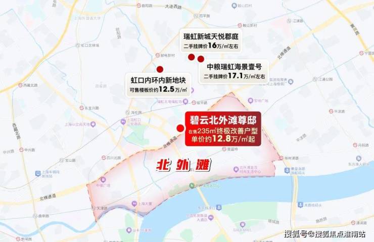 今年1批次土拍,虹口内环内靠近北外滩的新地块经过5家房企,184轮举牌,最终以 溢价率38.2%,总价 89.6亿的超高总价成交,成交楼板价约11.7万/㎡,实际可售楼板价约12.5万/㎡,未来售价或超过17万/㎡ (预计价格仅供参考,以项目官宣为准)。