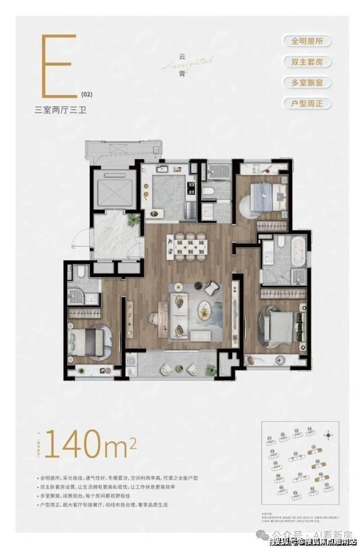 E户型:建面约140㎡3房2厅3卫▼陆家嘴.锦绣云澜售楼处电话:400-8567-334✔✔