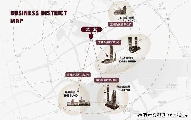 陆家嘴商圈直线距离约1500米;