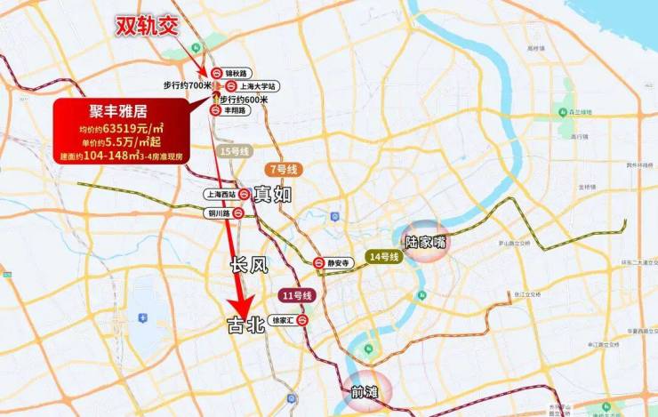 聚丰雅居显著的标签就是“7/15号线双轨配置”,依托这条“黄金线路网”,通勤半径可轻松覆盖上海多核心区域: