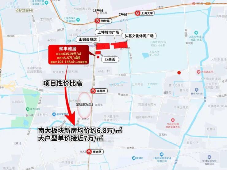 从“当下宜居”看,项目核心优势已然成型:紧邻7号线、15号线双轨交,通勤便捷度拉满;出门即享聚丰园路成熟生活圈,商超、餐饮等配套一应俱全;同时背靠上海大学,高知人群聚集的人文氛围,让居住质感再上一层。