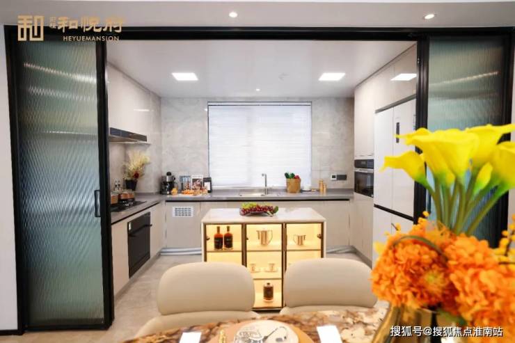 三个朝南开间带来充足的阳光,U型厨房布局, 烹饪时刻优雅自在,且与户门距离适中,避免了油烟困扰。