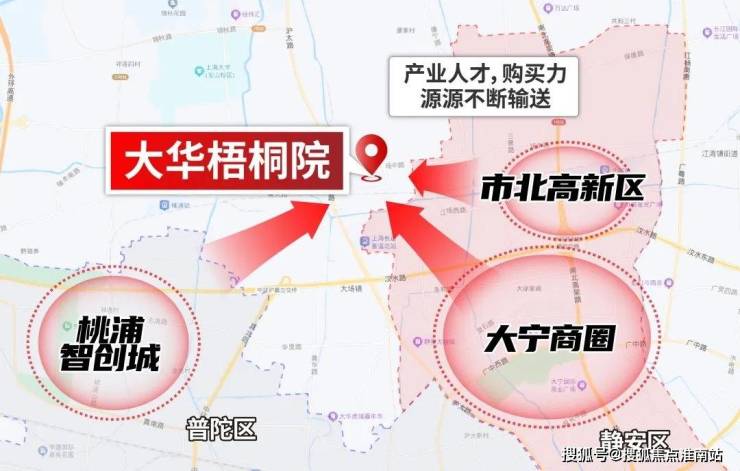 大华梧桐院位于宝山、静安、普陀的核心交汇处,南临静安大融城、大宁板块,向西是桃浦智创城,东侧是市北高新区。