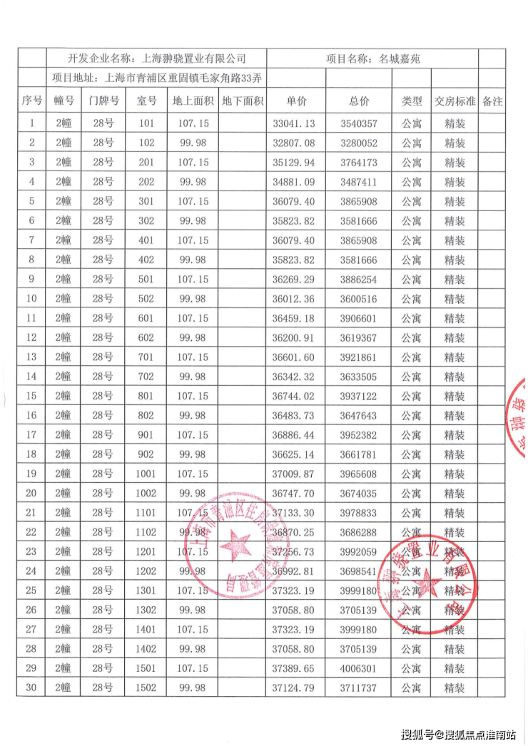 一房一价表