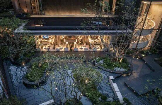 追求中国造园古训的精髓“虽由人作,宛自天开”,模拟自然溪流底部那种青苔覆盖、温润灵动的质感,还会选取天然原石镶嵌于漫步阶梯上,真正营造出“大隐隐于市”的东方体感。