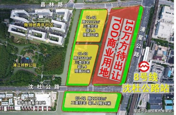 项目位于于前滩南浦锦板块,距离8号线沈杜公路站直线距离约200米,西边紧贴着浦江郊野公园,东侧就是未来的TOD综合体。
