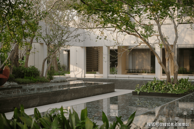 用“雕刻”的方式追求景观艺术的极致表现——在立面、细节、材质以及植物的布局上进行匠心雕琢,还通过空间结构的巧妙设计,创造出一个层次丰富的景观美学空间。线条、材质、对景,让人在行进之中体会到静谧中高雅、永恒的美感。