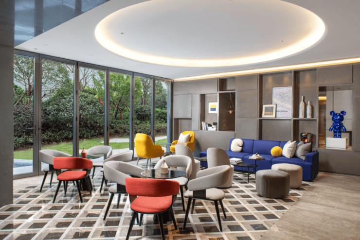 首层大堂约9米的超高挑空,设立了礼宾台及休息会客区,尊崇感十足.项目由新鸿基启胜物业提供了港式高标准的物业服务,包括管家、客服、24小时云端安防,以及各类定制服务.