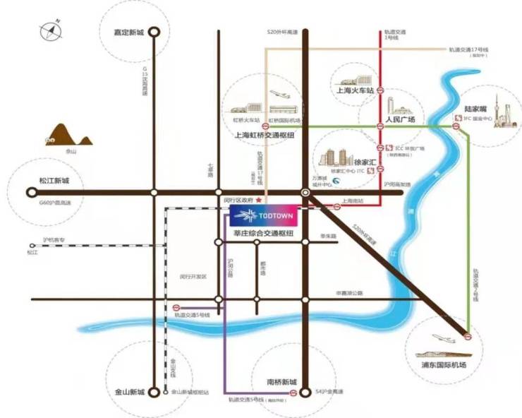 项目位于上海新晋主城副中心——闵行莘庄,处于7000平方公里虹桥国际开放枢纽范围的核心带,集约畅达的交通网络,在未来轨道交通将升级为5条,包括地铁1、5号线,嘉闵线、金山线、沪杭客专。除此之外,还坐拥S4沪金高速、S20外环高速及二十余条公交线路通达全市;G60、320国道等连接长三角城市圈,充分享受城市发展的红利。