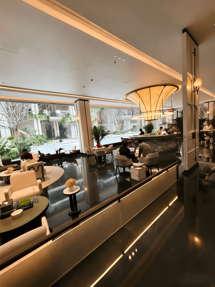 恒温泳池:天花板汲取松江古桥的拱形元素,池底铺满星空马赛克,仿佛在银河中游弋。健身馆:引进美国“必确”器械,高端酒店标配,落地窗外即是瀑布景观。私宴厅:墙面融入松江非遗“顾绣”工艺,让宴饮充满在地文脉的温度。