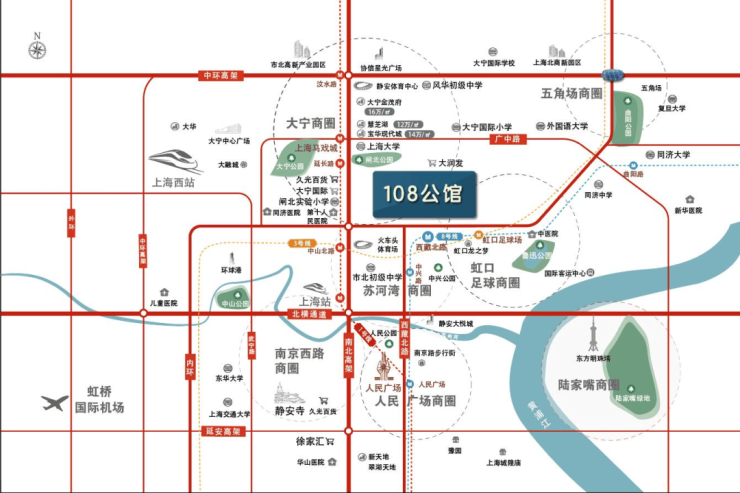周边:大宁国际商业广场、静安大悦城、苏河湾万象天地