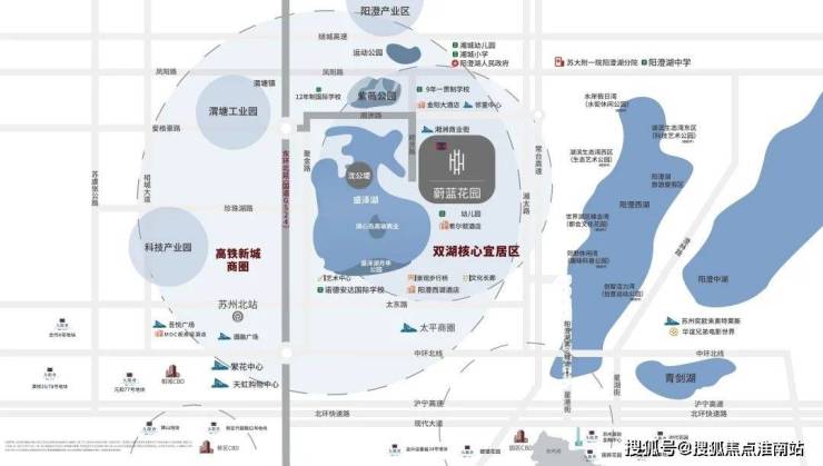 九龙仓蔚蓝花园所在的位置属于苏州北双湖板块,与风光秀美的阳澄湖、盛泽湖为邻。住宅与湖景的距离,其实也暗示着一块土地的价值,离得越近,土地价值越高,更能给业主提供良好的居住环境。
