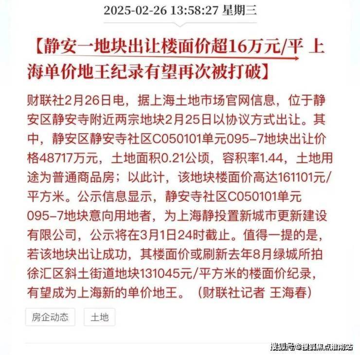 早在2月底,“静安新地王”就成为市场焦点。