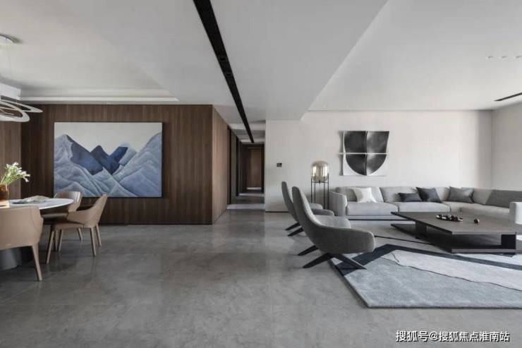 室内设计,秉承摩登东方的理念,设计以人、生活为中心,从空间本体和情感层面都回归生活,270度环幕采光,开放式会客厅设计,兼具尺度感与功能性。