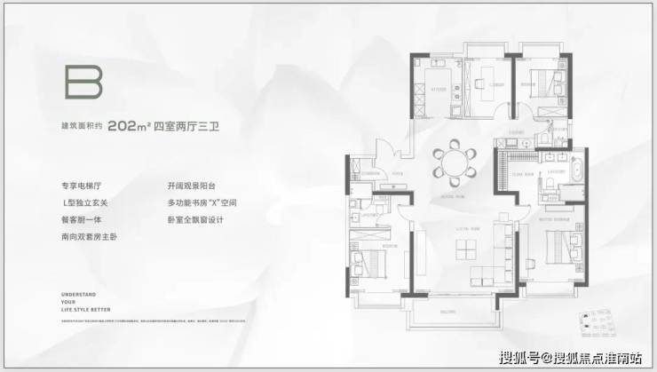 M+科技体系:首创M+科技体系,以智慧、健康、精工、生态四大体系,赋予空间美好的体验与品质,每一寸细节皆为生活悉心定制。