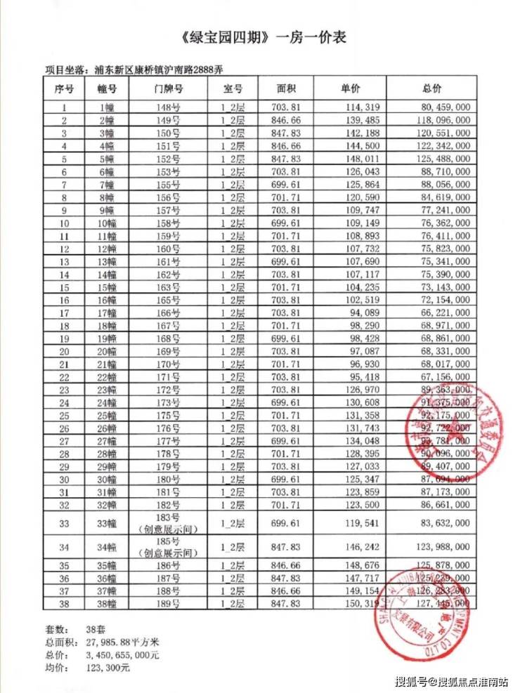 一房一价表: