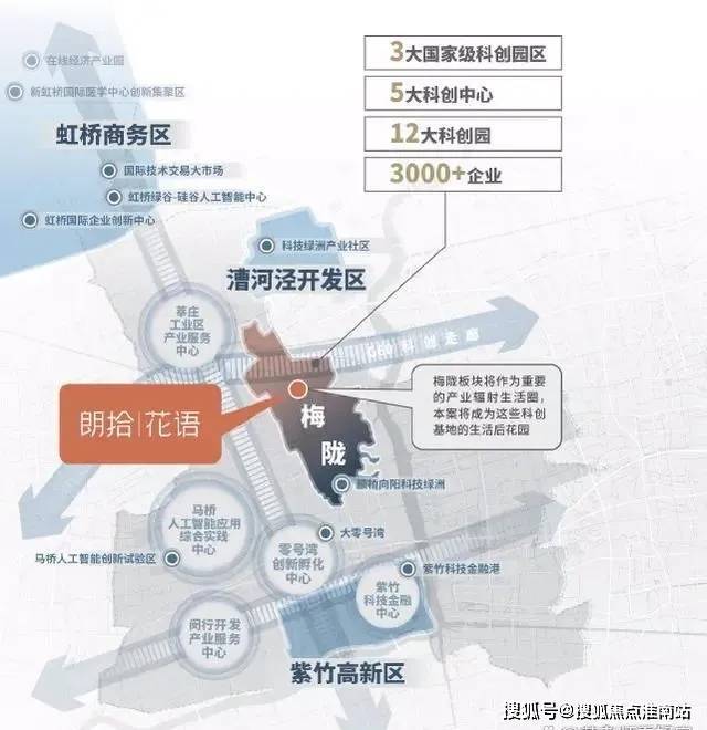 朗拾花语所在的梅陇板块距离中环线直线约2.8km,这一点比同级别的各板块都近,甚至比约800万级的莘庄七宝都近。