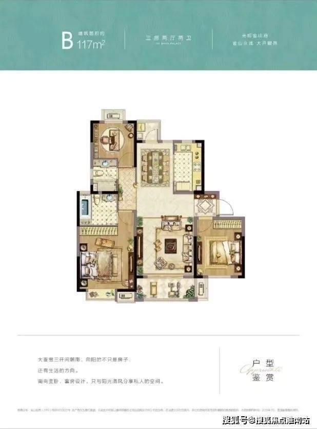 6.户型三开间朝南,南北双厅双阳台,尽揽小区四季美景